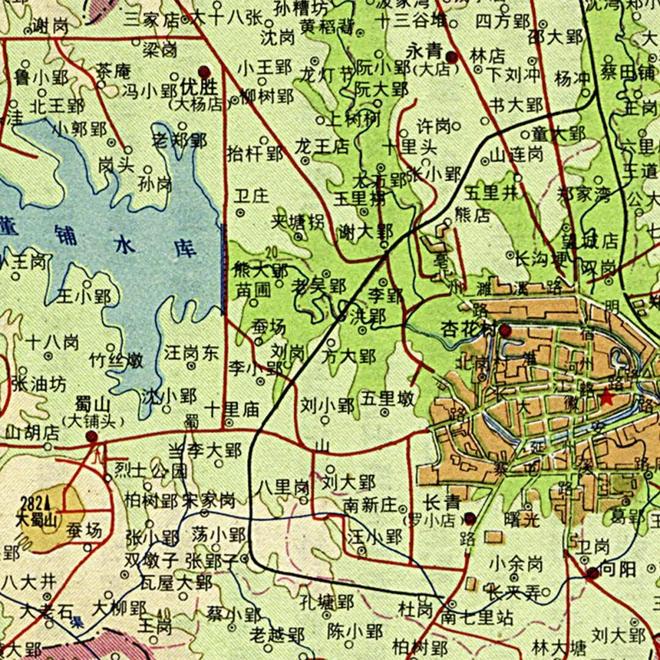 这里有必要了解一下新合肥西站选址。新西站所在地——“东新庄”,系上世纪50年代后期建设董铺水库时,库区规划范围内部分居民整体搬迁至此,从而形成的新村庄。附近有西新庄、南新庄等,亦以此得名。东新庄地处城西八里岗一带,东邻北七里塘(又名望塘),北靠南淝河,有一小河自南向北流经村西头汇入。